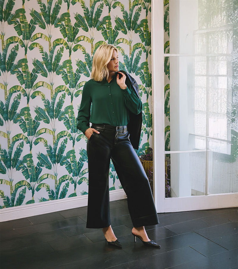 Vegan Stretch Sculpt-Her™ Leather Wide Leg Pants | Black