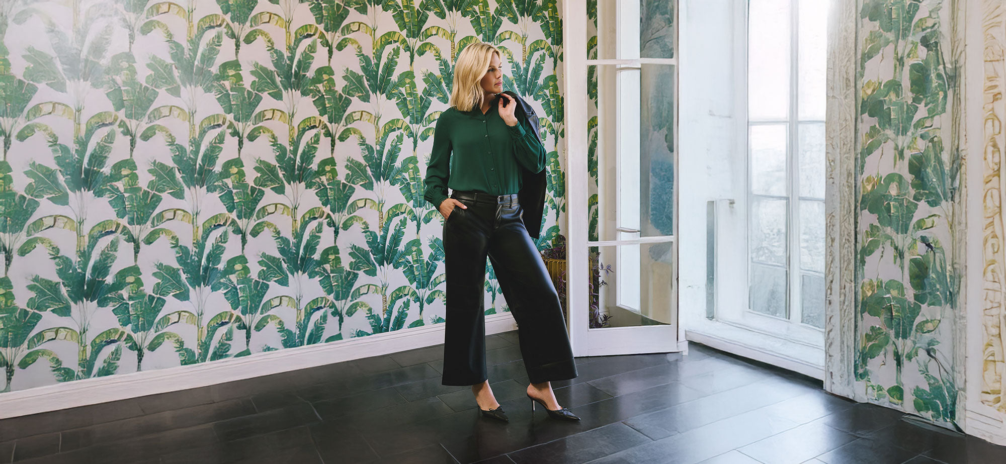Vegan Stretch Sculpt-Her™ Leather Wide Leg Pants | Black